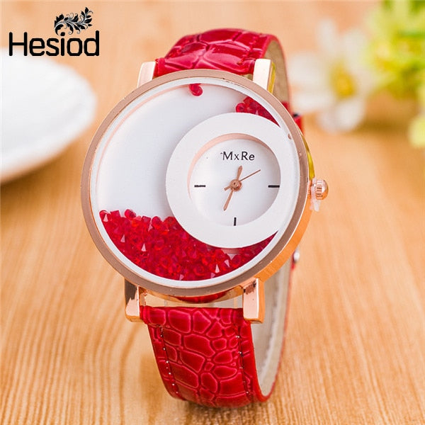 New Fashion Leather Strap Women Rhinestone Wrist Watches Casual Women Dress Watches Crystal Solid Color Hot Relogio Feminino