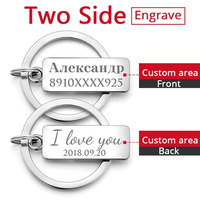 Custom Engraved Keychain For Car Logo Name Stainless Steel Personalized Gift Customized Anti-lost Keyring Key Chain Ring P009