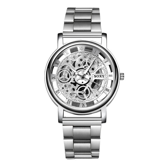 SOXY 2019 NEW Men Watches Skeleton Top Brand Luxury Business Watches Men's Stainless Steel Band Auto Date relogio masculino saat