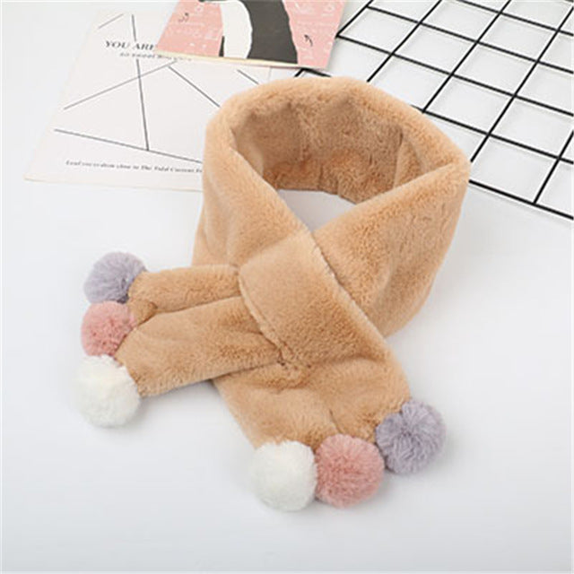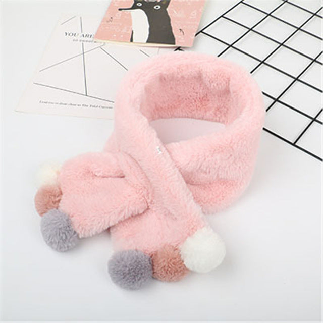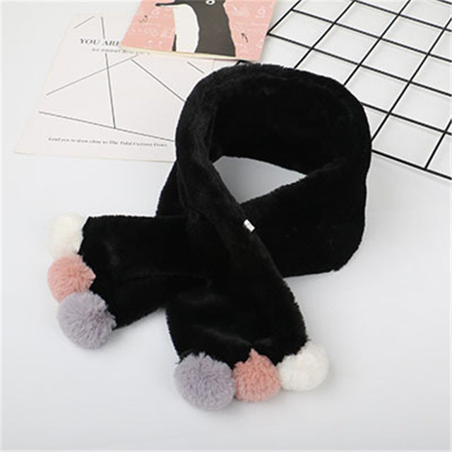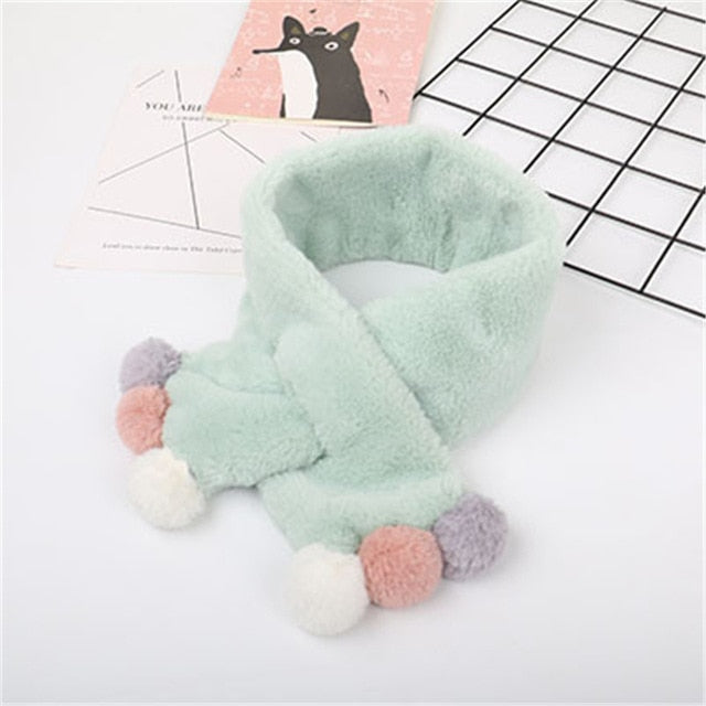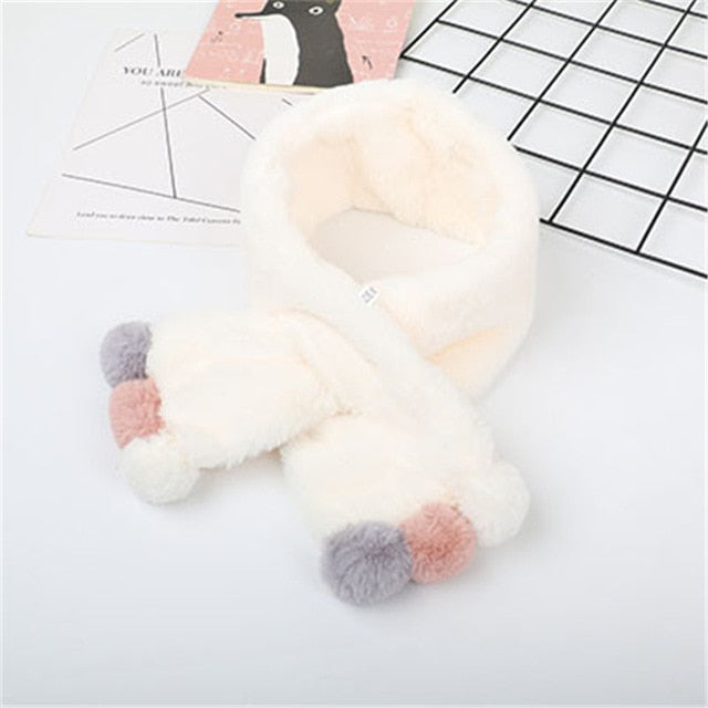 Winter Cute Children Scarf Boy Girls Scarves Baby Imitation Rabbit Fur Collar Scarf with Pompom Neck Warmers Christmas Gift