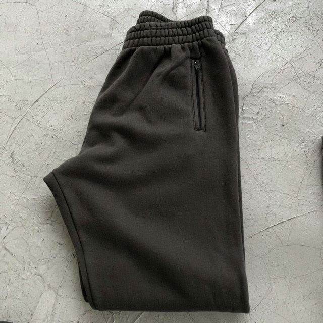 Winter Kanye West Heavy cotton Fleece Sweatpants High Quality Hip Hop Distressed Jogger Pants